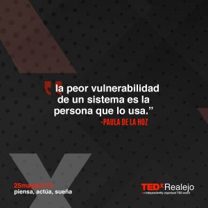 A seis días para TEDxRealejo 2019, ¡Os traemos otra entrevista! Hablamos con Paula De La Hoz, ingeniera informática conocida por su activismo en defensa de la privacidad, los derechos digitales y la seguridad informática. Dejamos que le echéis un vistazo a su entrevista, nos ha resultado super interesante: